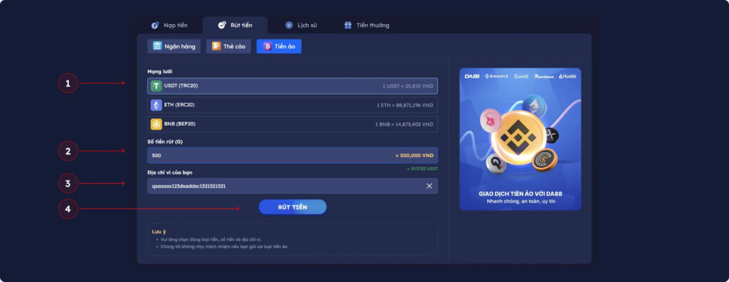 • Hạn chế: Tỷ lệ quy đổi thường thấp hơn so với các phương thức khác, và có thể không phù hợp với những người muốn rút số tiền lớn.